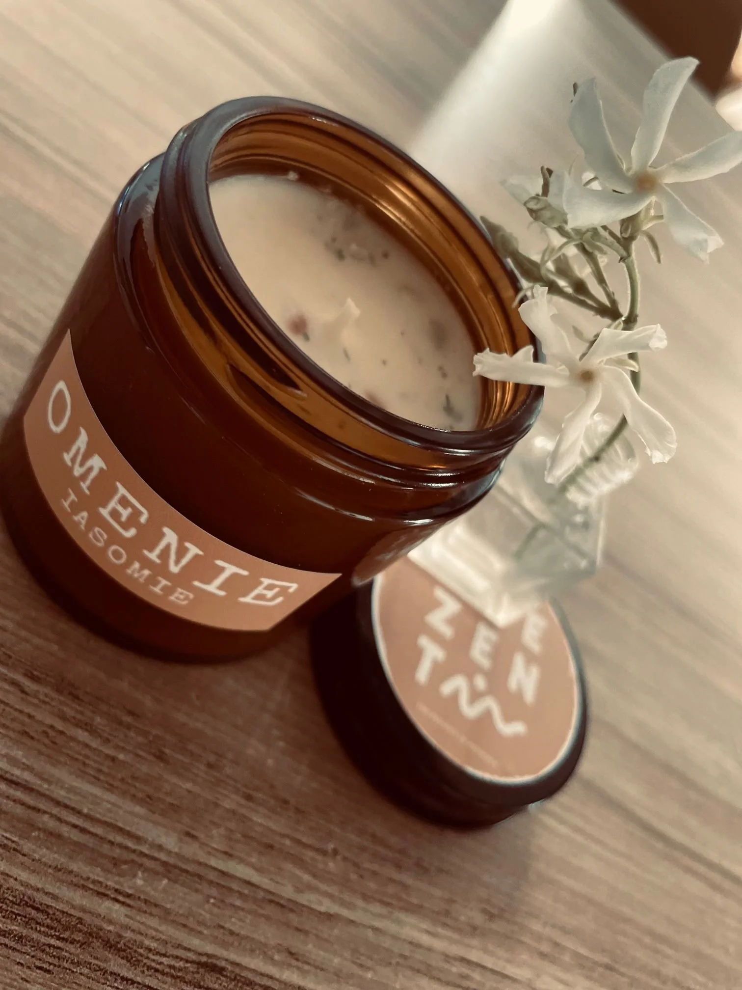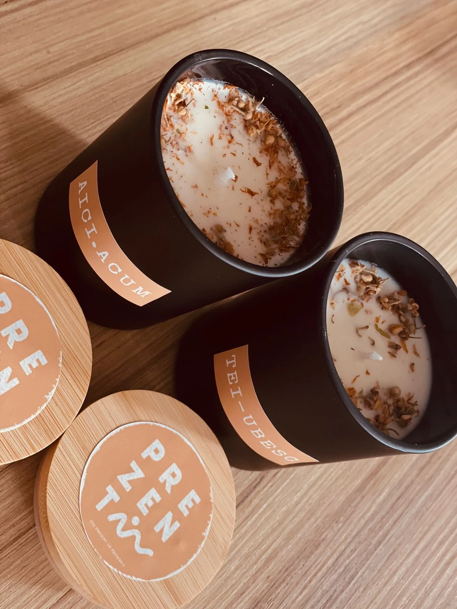 Ingrediente premium naturale: ceara natural de soia, parfum natural flori de tei, fitil non toxic de bumbac.