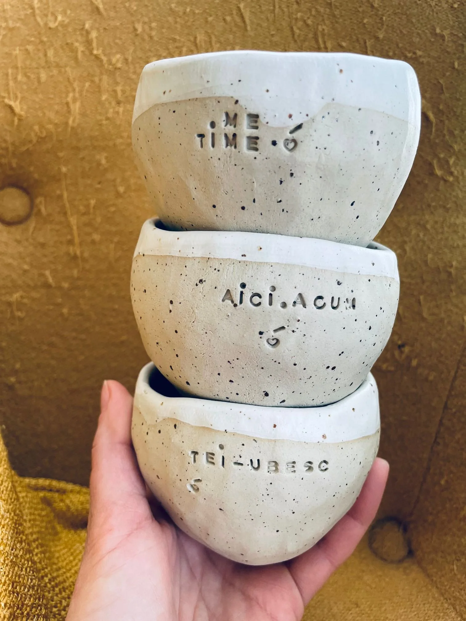 Canutele ceramice HANDMADE vin insotite de 3mesaje puternice: TEI-UBESC / AICI. ACUM. / ME TIME